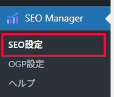 - プラグインをインストールすると、サイドナビに「SEO Manager」が表示されます。